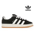 Le adidas Campus 00s Core Black sono rivestite da colorazioni bianche e nere sulla tomaia, intersuola bianca e suola marrone. Queste sneaker sono realizzate con materiali in pelle scamosciata, gomma e cuoio che ne completano la struttura. Le adidas Campus 00s Core Black presentano il logo adidas sulla linguetta e sul tallone con il marchio del campus sulla parte posteriore.