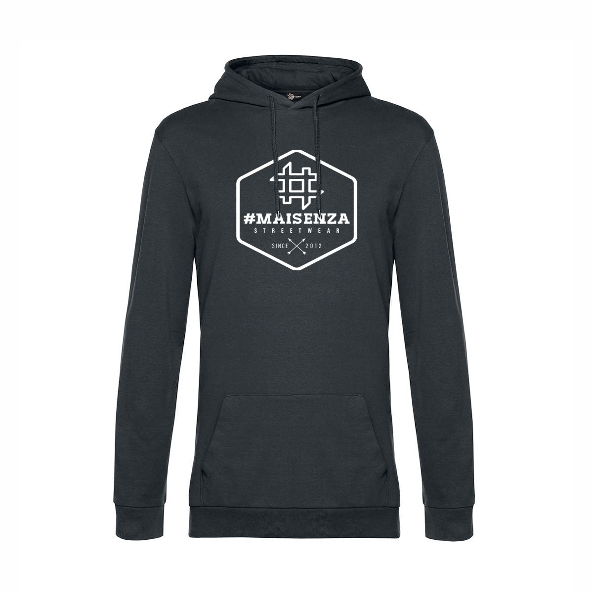 Felpa con cappuccio minimal, struttura con cuciture laterali e mezzaluna in single Sgarzata internamente, molto morbida e liscia esternamente.