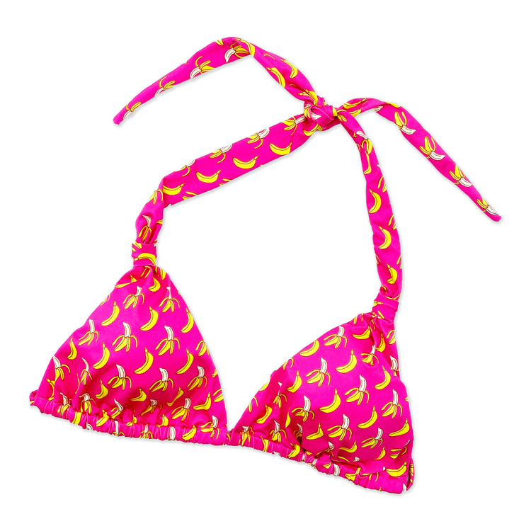 - Descrizione: Slip Brasiliana con fascia larga laterale a fantasia colorata bananine, abbinabile con fascia o triangolo monocolore