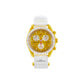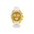 Questa stella del firmamento di colore giallo acceso come il sole, presenta un raffinato quadrante spazzolato e un cinturino in VELCRO© bianco.