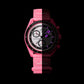 Per celebrare la Luna rosa di aprile, questo cronografo presenta una cassa, una corona e dei pulsanti in Bioceramic rosa e un cinturino VELCRO® rosa con cuciture bianche a contrasto e passante di fissaggio in Bioceramic rosa.